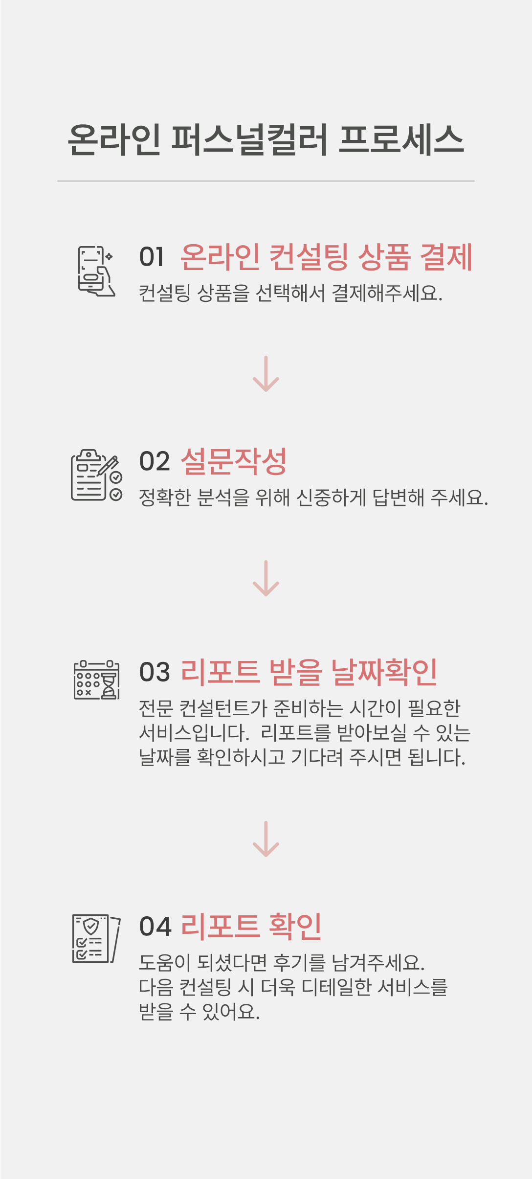 ※ 온라인 컨설팅은 고객님의 이미지, 설문, 즐겨쓰는 화장품 정보로
